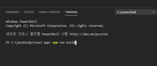 그렇기에 배포할 때에 한번 빌드를 통해야한다. 터미널에 npm run build를 입력해주면