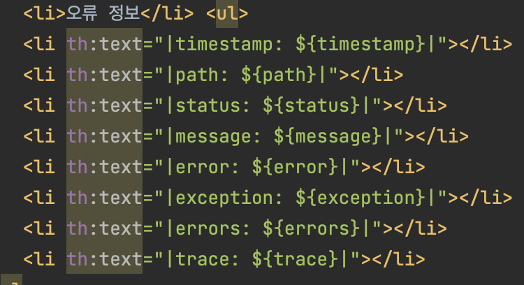 BasicErrorController는 오류정보를 model에 담아 view로 보내준다. 이 값을 이용해서 출력해 줄 수 있다.