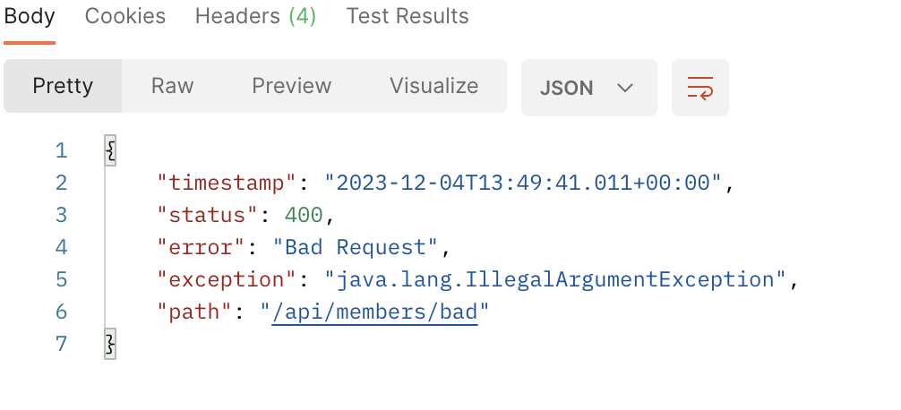 이렇게 status를 400으로 받게 되었다.