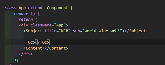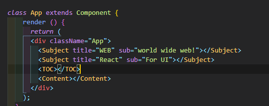 마지막으로 속성값의 이름을 적어 주면 컴포넌트 태그에 걸어둔 프롭스 값이 들어가게 된다.