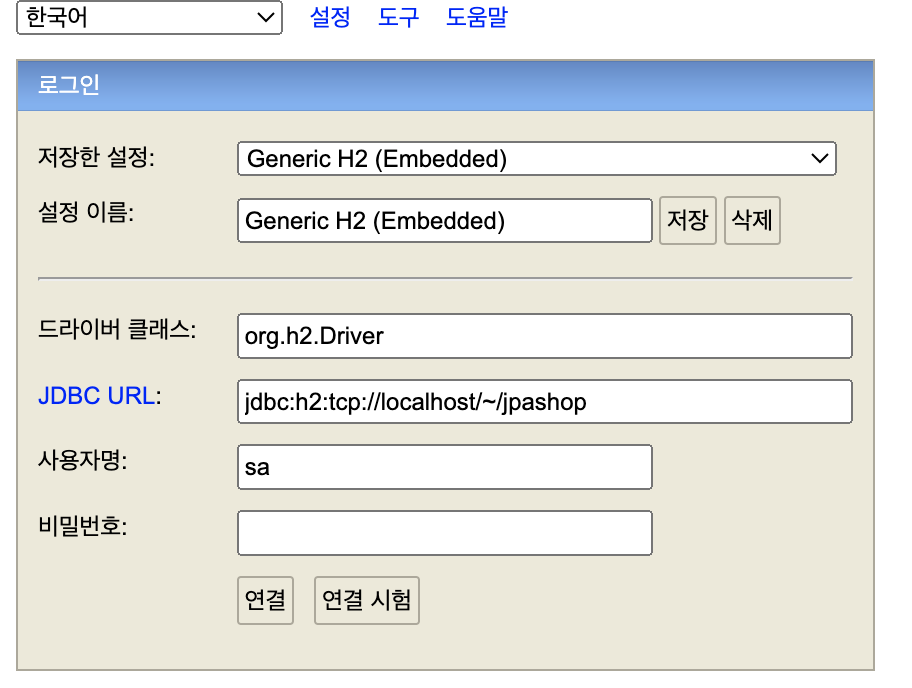 home 경로에 jpashop.mv .db가 생성 된다.