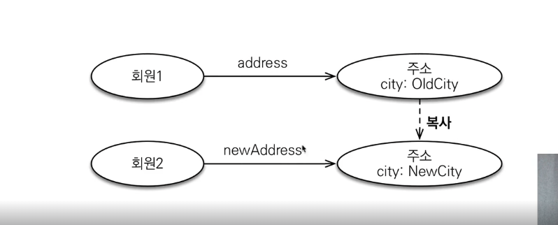 - 임베디드 타입 같은 값 타입을 여러 엔티티에서 공유하면 위험함