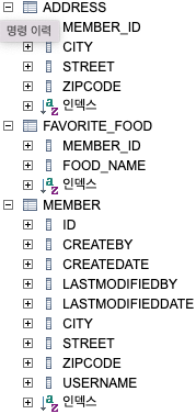 위와 같은 로그가 뜬다. 값을 넣었던 FavoriteFood와 AddressHistory가 함께 잡히지 않는다. 그것은 값 타입 컬렉션은 지연로딩이라는 뜻이 된다.