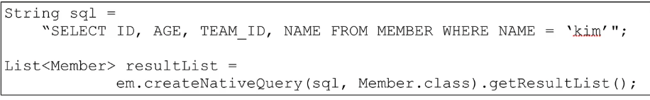 - JPA가 제공하는 SQL을 직접 사용하는 기능