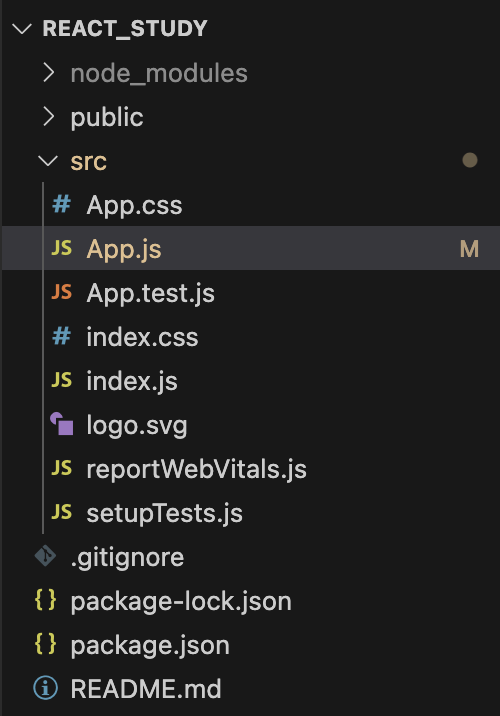 App.js에서 마크업을 짜면 index.js의 설정으로 인해 index.html에 표시 된다.