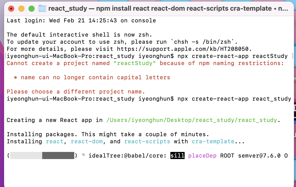 npx create-react-app react_study