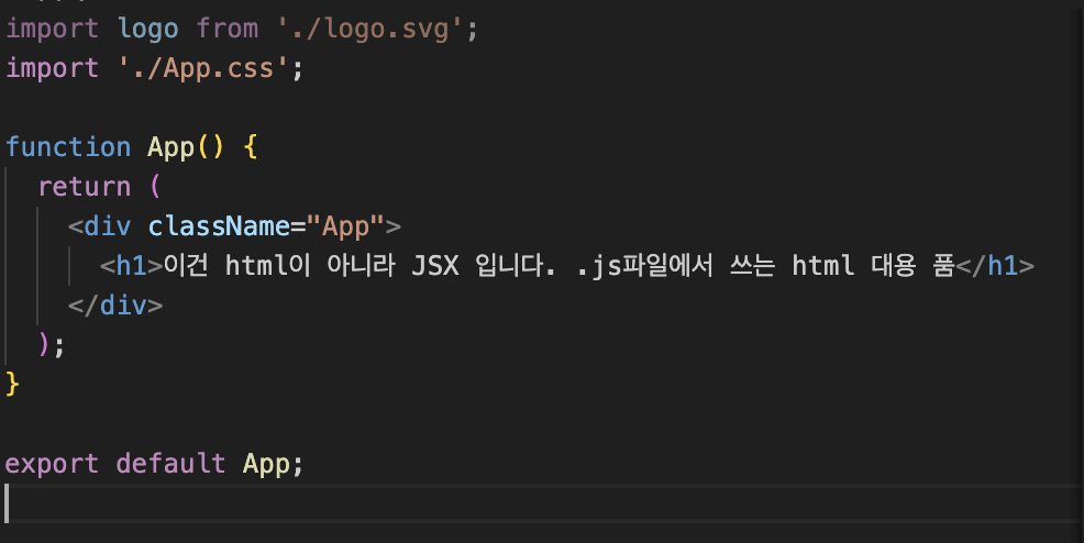 .js 파일 안에서는 JSX를 사용한다. (그냥 html 쓴다고 생각하면 됌)