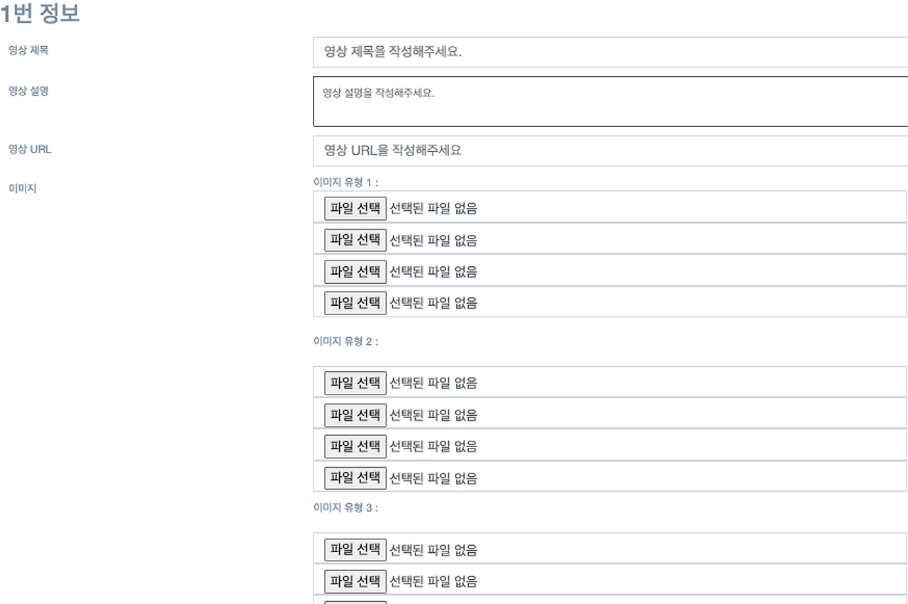 → ์ ํ ๋ณ๋ก ๊ฐ๊ธฐ ๋ค๋ฅธ ๋ชจ์์ ๋ฃ์ด์ผ ํ๊ธฐ์ ๋์ ํ ๊ณตํต์ผ๋ก ์ก์ ์๊ฐ ์์๋ค(ImageUpload1,2 ๋ฑ)