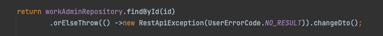 - ์์ธ๋ฅผ ์์ํ ์ ์๋ ๋ถ๋ถ๋ค์ ๋ชจ๋ RestApiException์ ์์ธ๋ก ๋์ง๋ฉฐ ์์ธ๋ฉ์ธ์ง๋ฅผ Enum์ผ๋ก ๋ง๋ค์ด ๋ณด๋ด์ค๋ค.