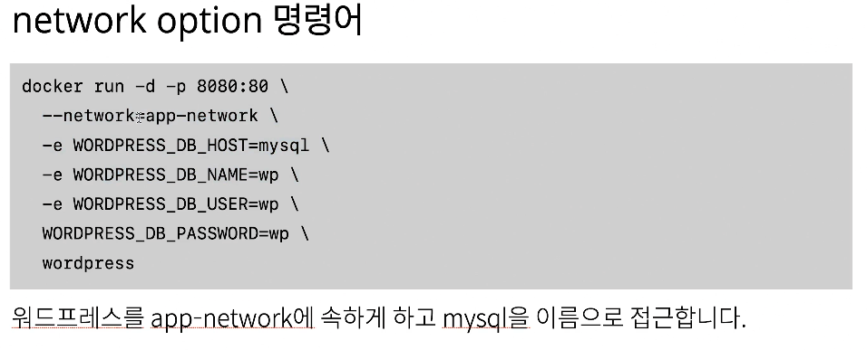app-network라는 이름으로 wordpress와 mysql이 통신할 네트워크를 만듭니다.