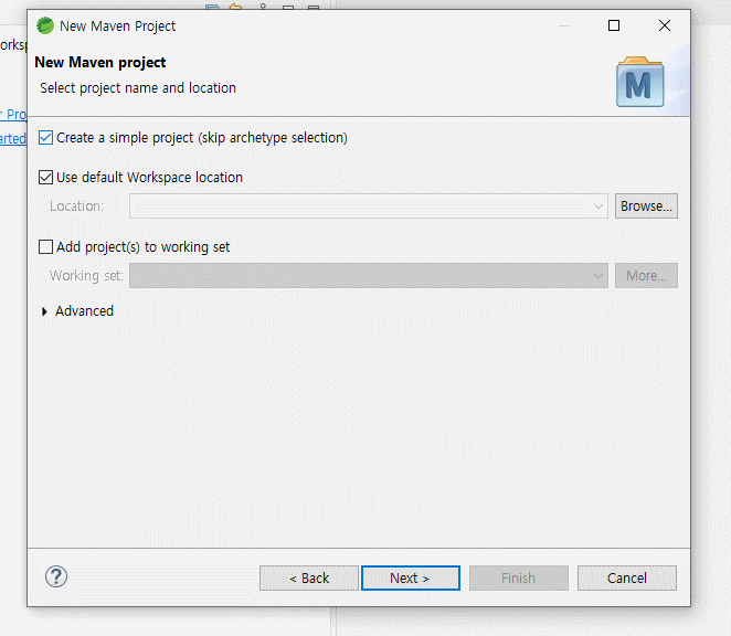 여기서 Create new Spring starter Project는 spring boot를 기반으로 만드는 프로젝트인데