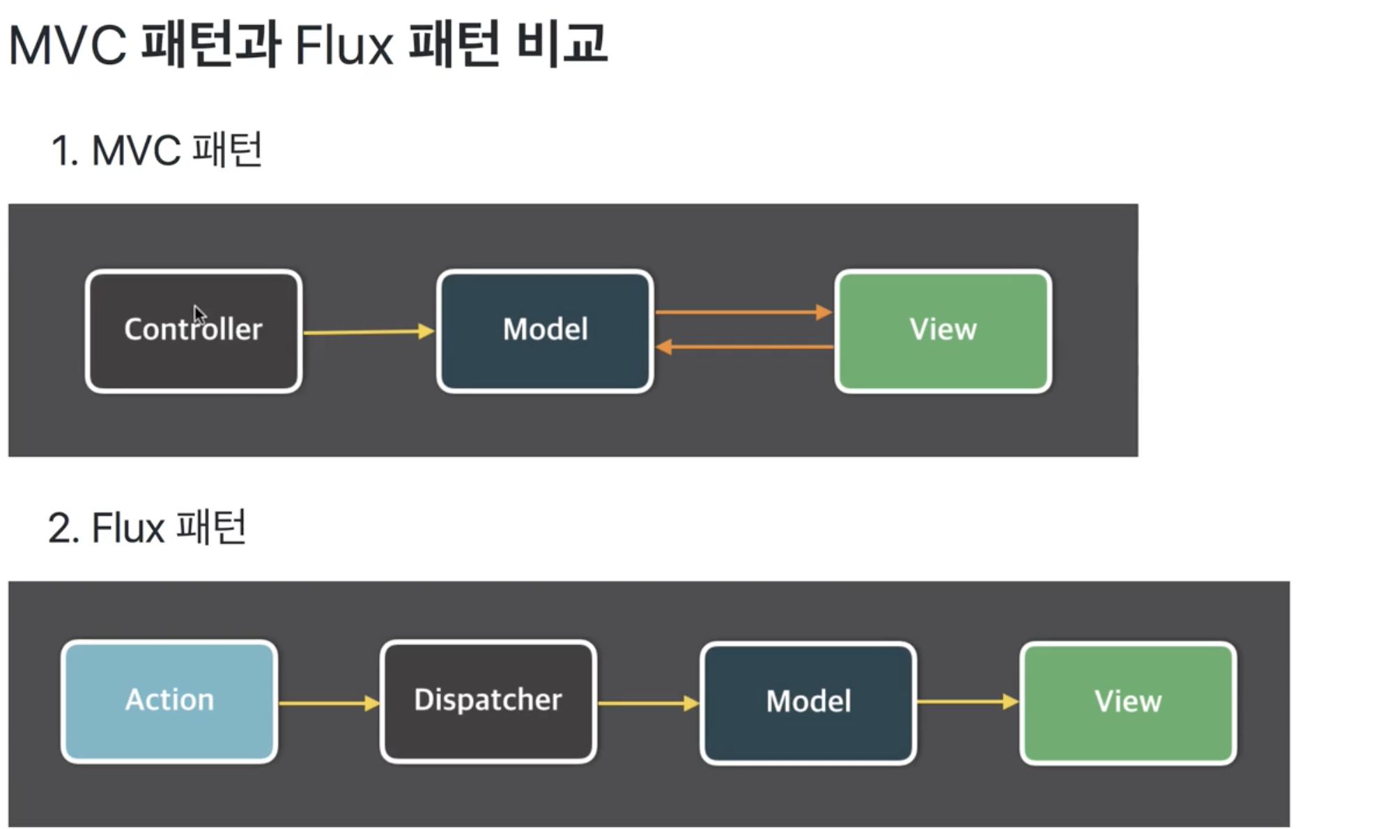 vue에서도 Flux처럼 도입한 것이 Vuex이다. 왜 MBC 패턴에서 Flux 패턴으로 넘어갔는지를 먼저 알아야 한다.