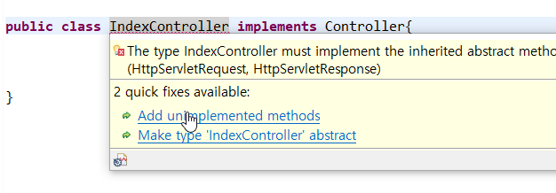 이제 컨트롤러에서 implements를 이용해서 컨트롤러를 상속한다