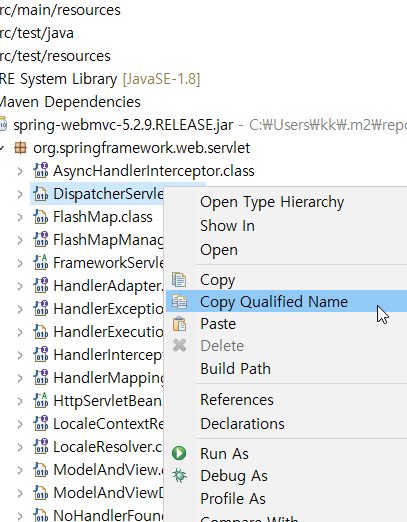 오른클릭 후 -> Copy Qualified Name 를 눌러 이름을 카피해준다