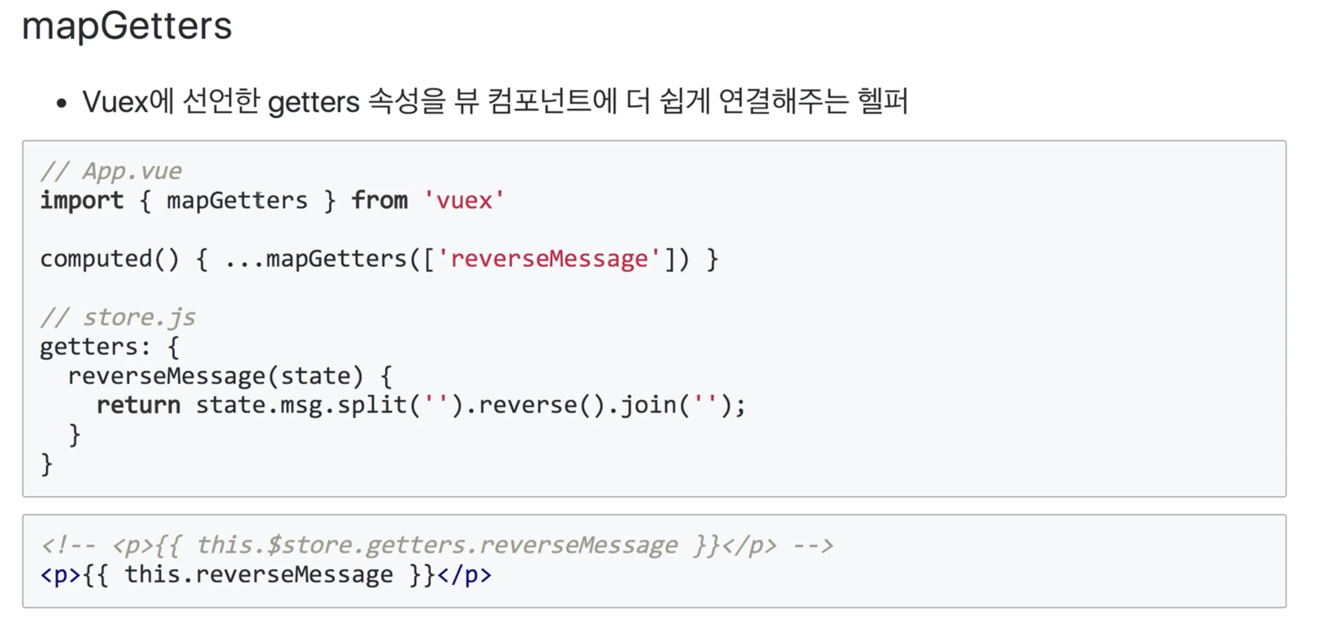 this.$store.getters.storedTodoItems 로도 접근이 가능하다.