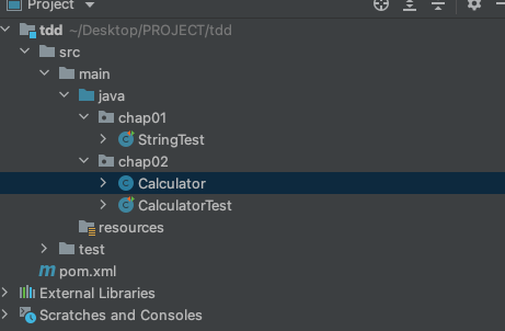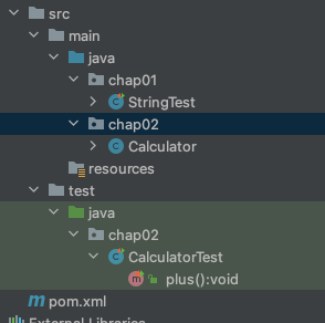 현재의 폴더구조는 이러하다. main/java는 배포 대상이므로 테스트는 test폴더에 있어야한다.