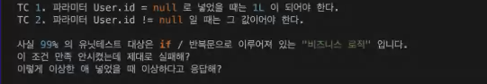 테스트 코드에 익숙하지 않고, 테스트 케이스를 짜는게 미흡해 => 요거때매 딜레이 되서 기능이 제대로 안된다? => 못하는 개발자