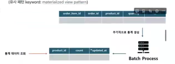 - 주기적으로 통계 데이터를 Batch Process 를 통해 취합하고 Sync를 맞추는 테이블을 생성