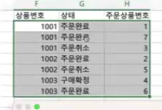 그림과 같이 정렬 기준을 보면 상품번호 - 숫자 오름차순, 상태 - 텍스트 오름차순 으로 만들어졌다.
