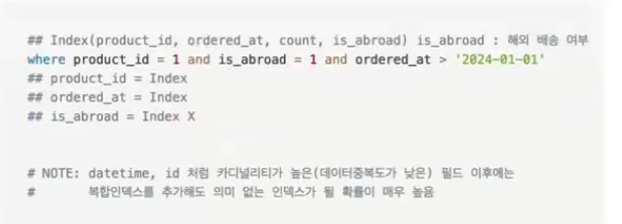 - 여러 컬럼으로 이루어진 인덱스에서는 일반적으로 카디널리티가 높은 순으로 배치
