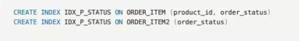 CREATE INDEX IDX_P_STATUS ON ORDER_ITEM (product_id, order_status)