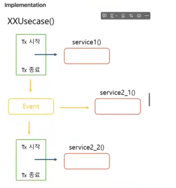 3. service1 완료 이벤트에 대한 리스너가 본인의 비즈니스(service2_1 & service2_2) 수행