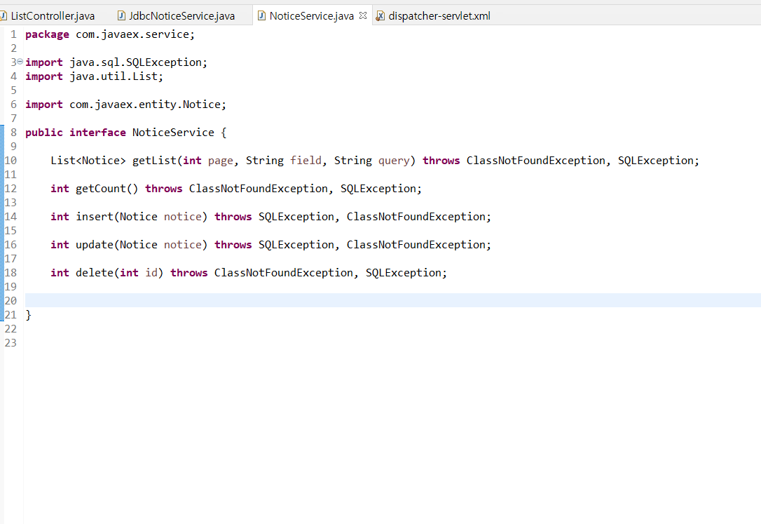 그 뒤에 이전에 사용한 NoticeService클래스의 클래스명을 JdbcNoticeService로 바꿔줬다.
