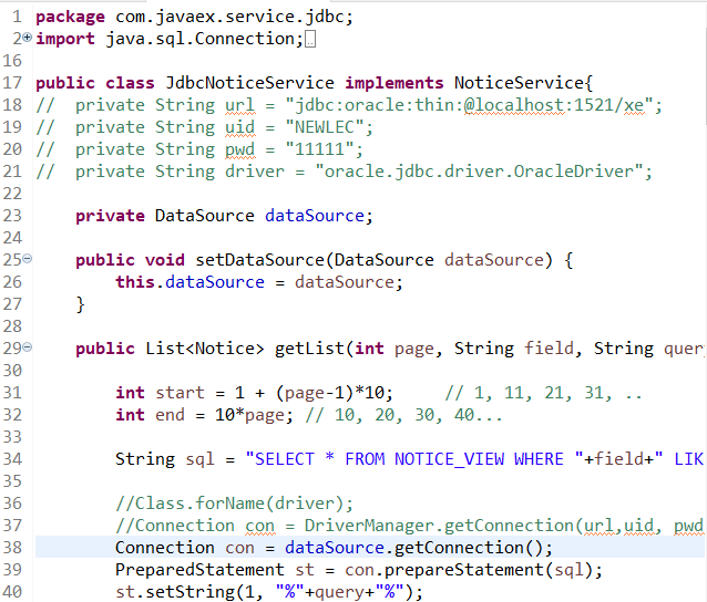 getList 메소드에서는 dataSource.getConnection()으로 간단히 정보를 불러오는 것을 확인 할 수 있다.