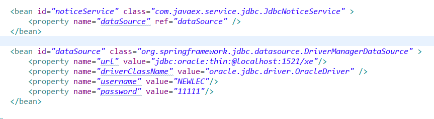 bean dataSource 객체에는 스프링 jdbc중 DriverManager객체를 추가해준다