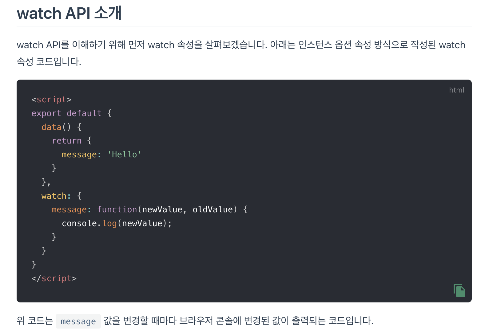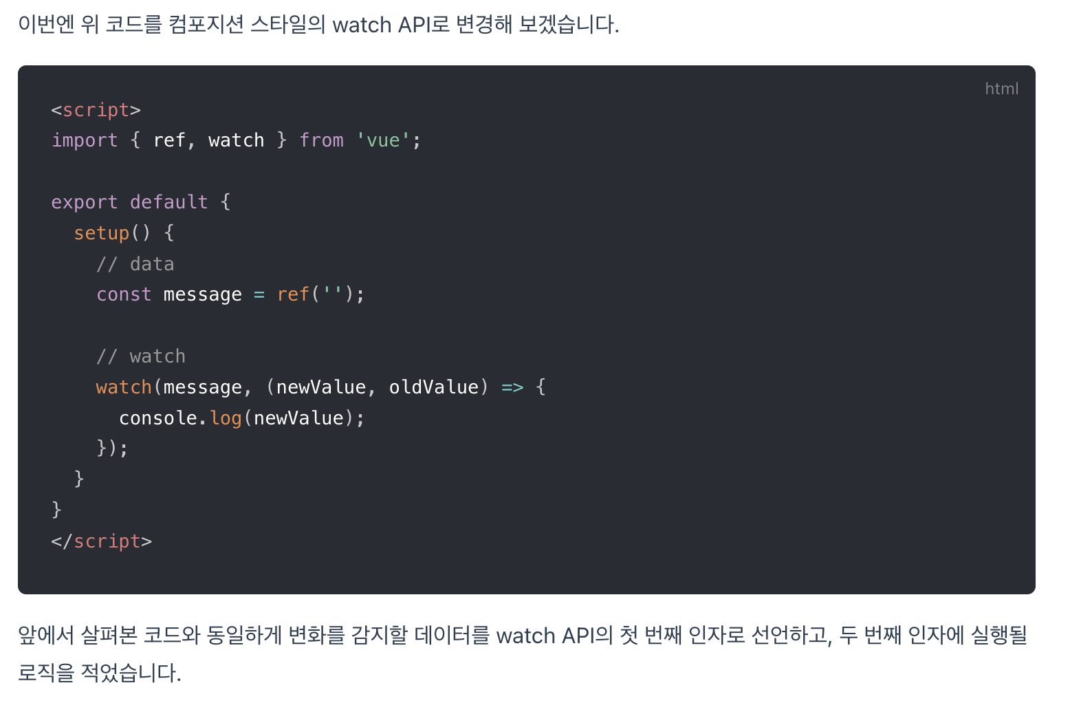 watch API도 컴포지션 API에서 사용하는 watch 속성을 의미한다.