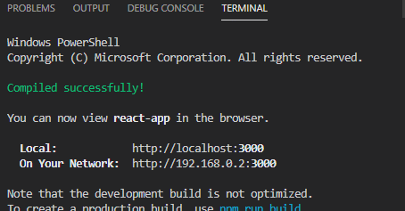 그 뒤에 TERMINAL에 npm run start를 입력해준다