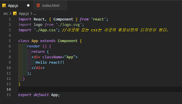 그리고 index.js에서 컴포너트 값을 받은 App.js또한 css를 가지고있는걸 확인 할 수 있는데