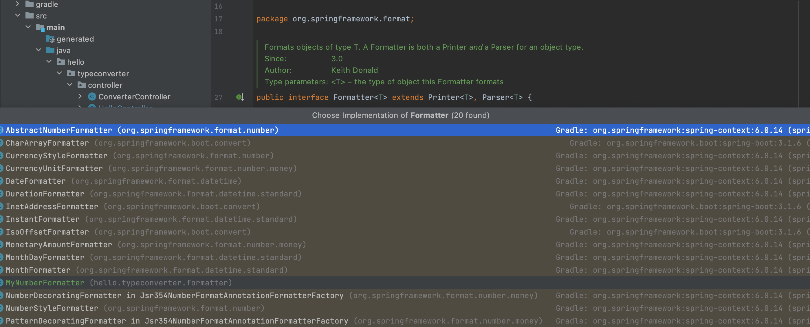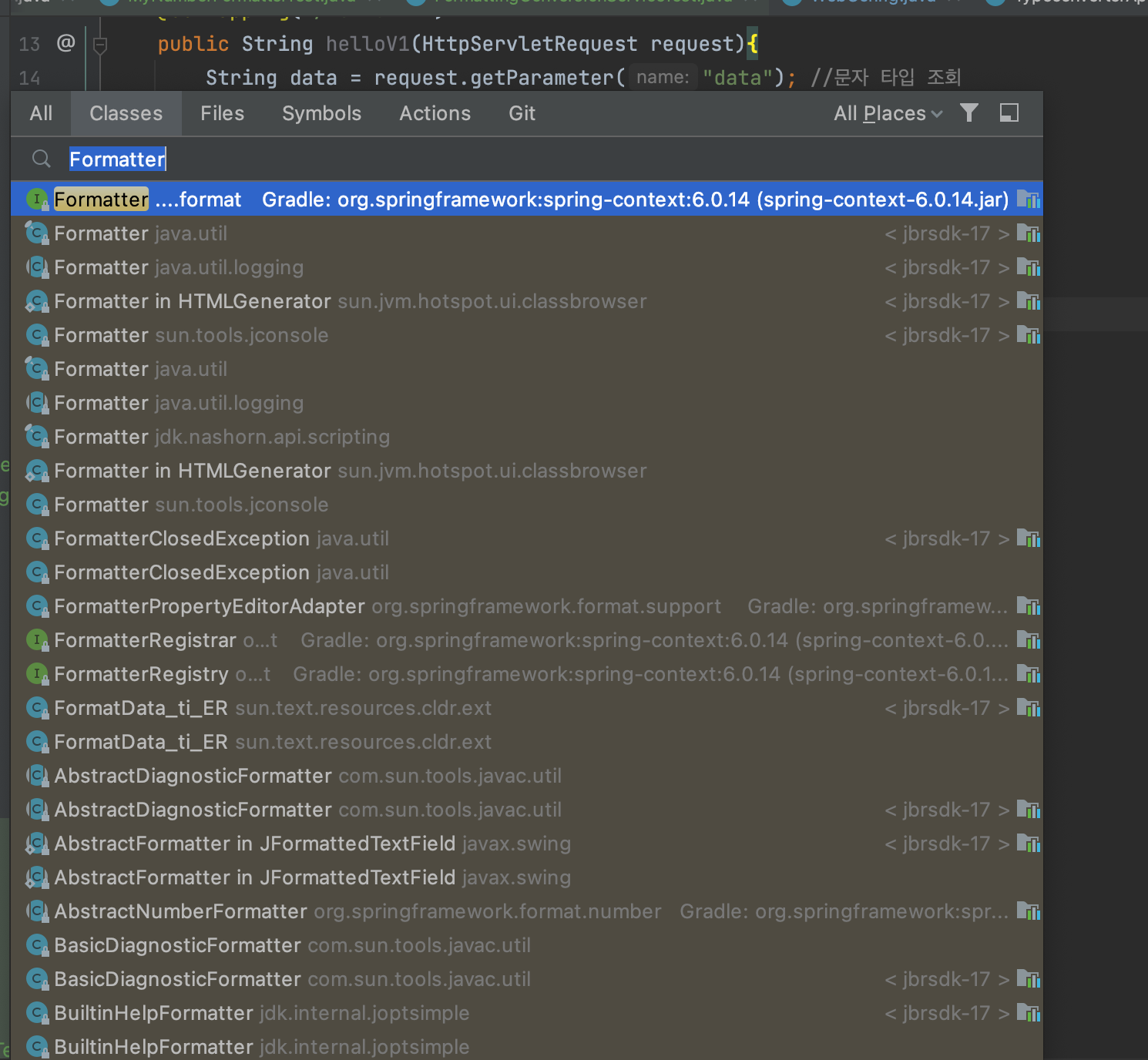 IDE에서 Formatter 인터페이스의 구현 클래스를 찾아보면 수 많은 날짜나 시간 관련 포맷터가 제공되는 것을 확인할 수 있다.