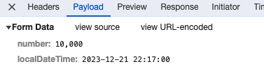 post edit으로 넘어올 때에 데이터는 스트링 "10,000" number와 "2023-12-21 22:17:00이 넘어오게 된다.