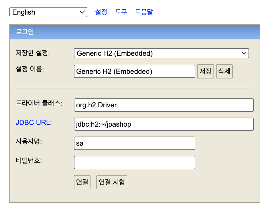 home 경로에 jpashop.mv .db가 생성 된다.