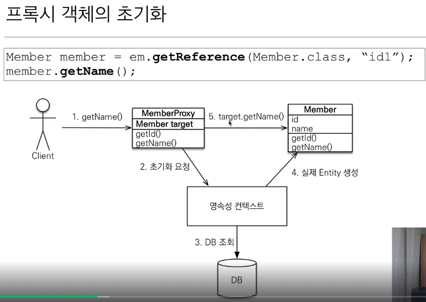 ㄴ 하이버네이트가 내부 라이브러리를 써서 프록시라하는 가짜 엔티티를 준다. 껍데기는 똑같은데 안에가 비어있다. 그 프록시 내부에는 Entity target =null 이라는게 있는데 이게 진짜 레퍼런스(엔티티)를 가르킨다.