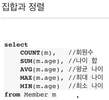 - JPQL은 객체지향 쿼리 언어다. 따라서 테이블을 대상으로 쿼리 하는 것이 아니라 엔티티 객체를 대상으로 쿼리한다.