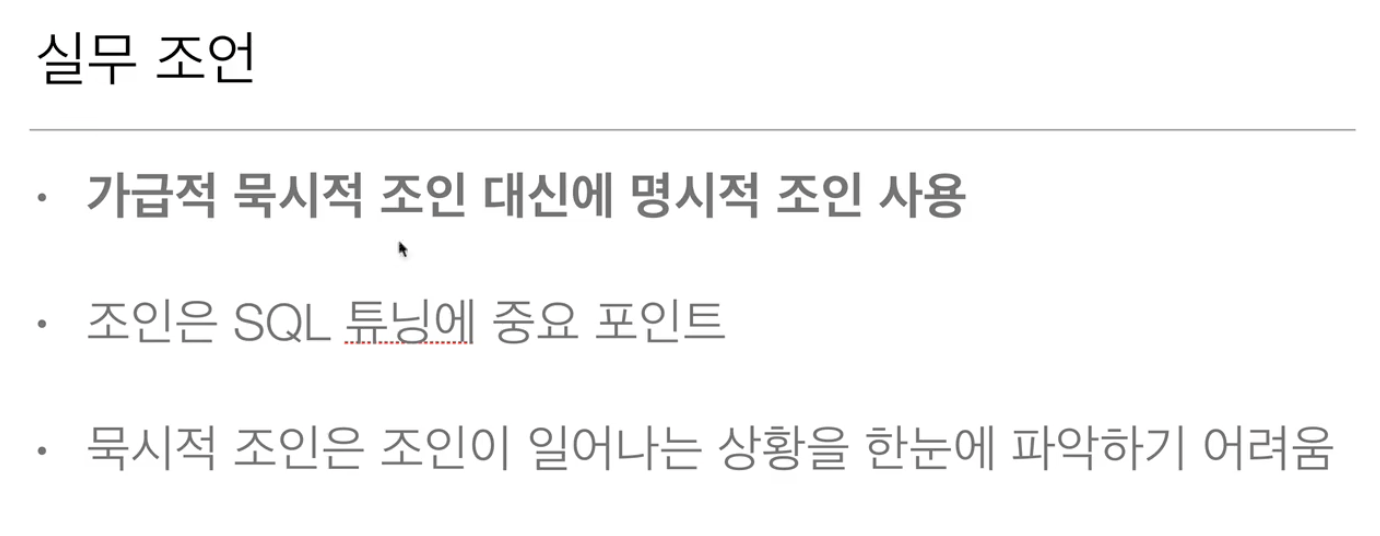 실무에서는 묵시적내부조인이 일어나지 않도록 조심해야한다.
