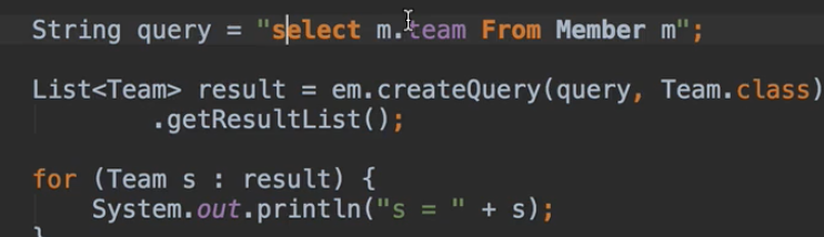 이렇게 Member 엔티티 안에 team을 가져오면 쿼리는 어떻게 나갈까?