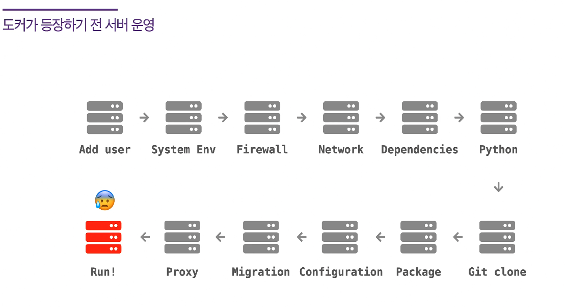 - 도커가 등장하기 전 서버 운영