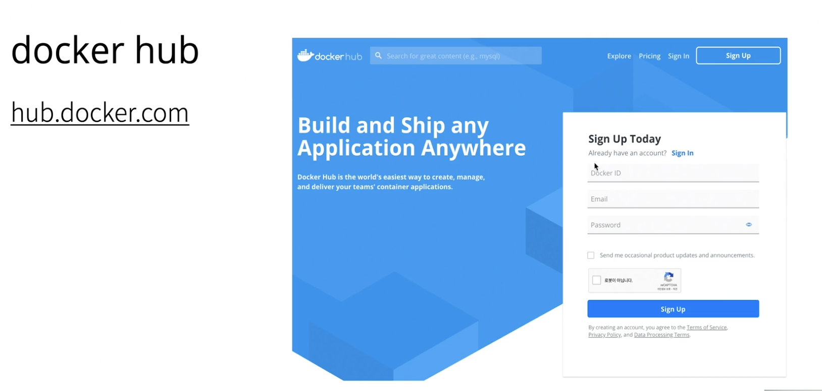 도커 허브가 있고, 도커 로그인을 할 수 있다. (무료로 사용하면 도커이미지를 다른 사람들도 받아진다. 혼자 사용할 거면 유료를 써야함 1개까진 된다는데..)