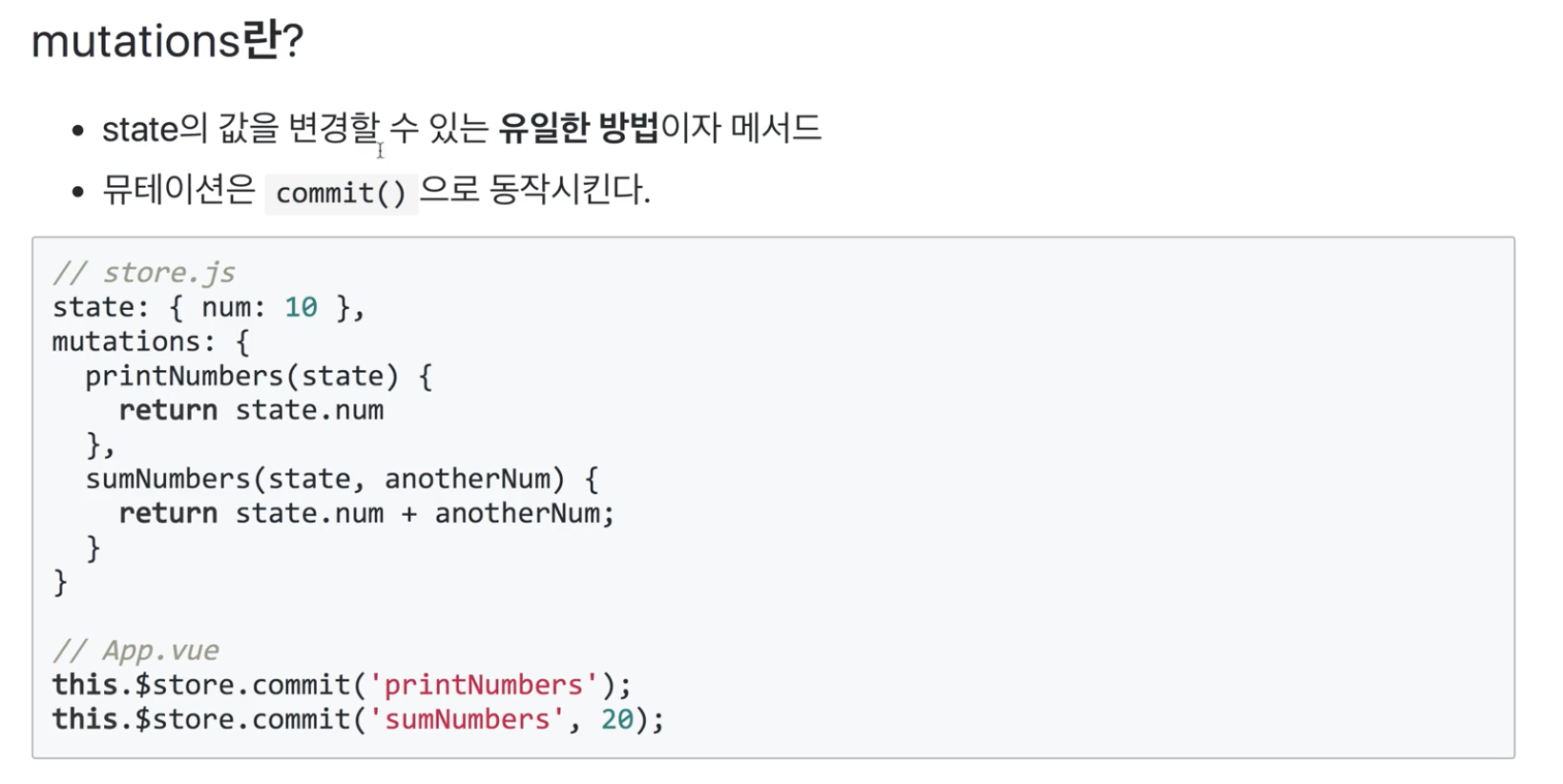 this.$store.commit(함수명,인자)를 넘겨서 사용할 수 있구만..