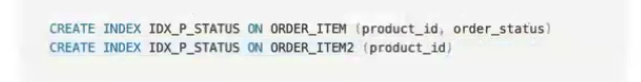 CREATE INDEX IDX_P_STATUS ON ORDER_ITEM (product_id, order_status)