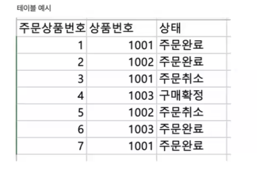 > 인덱스 테이블을 만들 때 상품번호와 상태의 순서가 중요한가? 생각 해봤을 때에 원하는 모양으로 정렬되어 있는 쪽으로 가면 된다.