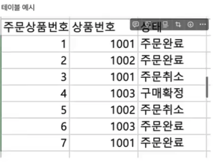 상품번호, 상태를 순차적으로 로우를 가진 테이블이 만들어 진다. (실제로 볼 수 있는 테이블이 아닌, db 자체적으로 관리되는 테이블이다.)